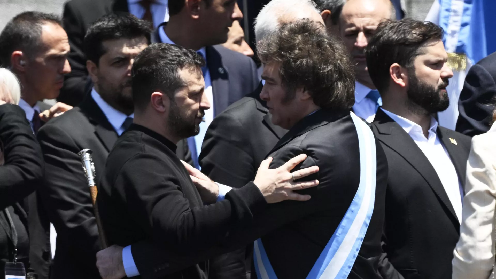 Durante el acto, Volodímir Zelenski felicitó al nuevo mandatario sudamericano por su victoria en las elecciones del mes pasado y lo elogió por su apoyo a Ucrania.